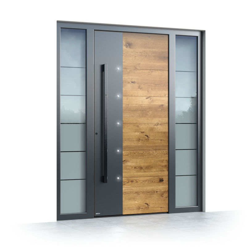 E qualcuno semplicemente non vuole avere un ingresso delle dimensioni usuali. I portoncini in alluminio possono essere realizzati con un’altezza senza precedenti di 300 cm e una larghezza di 280 cm con elementi laterali che danno l’impressione di una grandezza mozzafiato.
