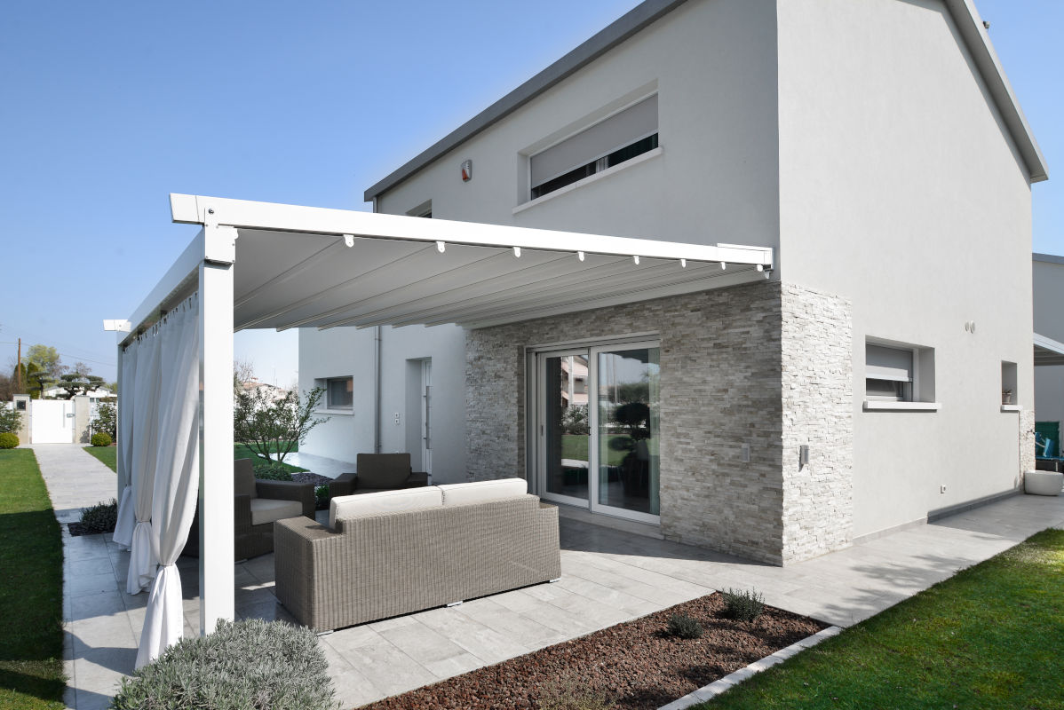 Le Tende sono realizzate con un cassonetto superiore in alluminio nel quale verranno inseriti i meccanismi di movimentazione come: arganello o motore ed il telo avvolto.
